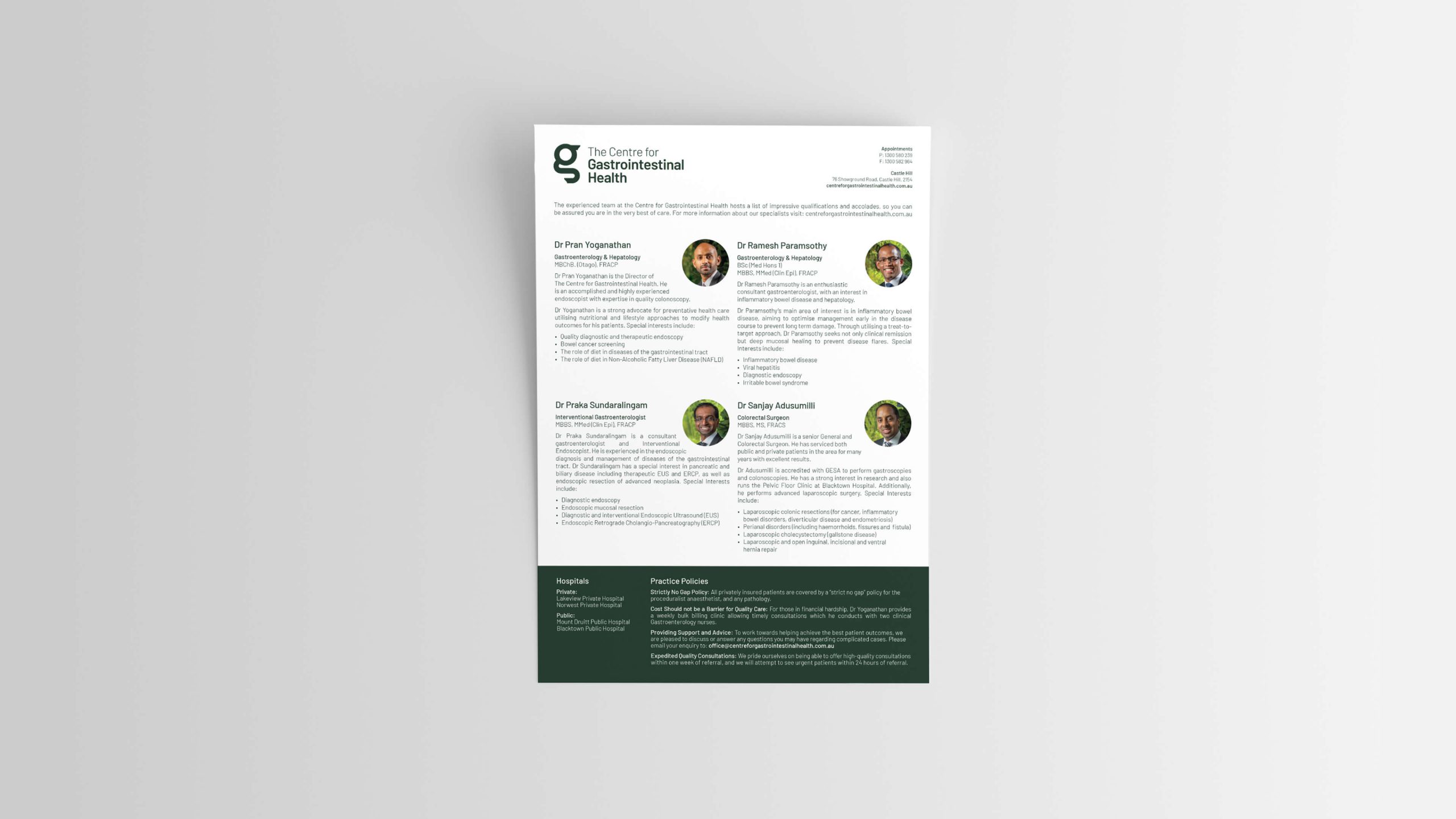 The Centre for Gastrointestinal Health offers a range of specialist services related to gut health and wellbeing. They wanted a new brand, collateral and website that reflected the current and future vision.